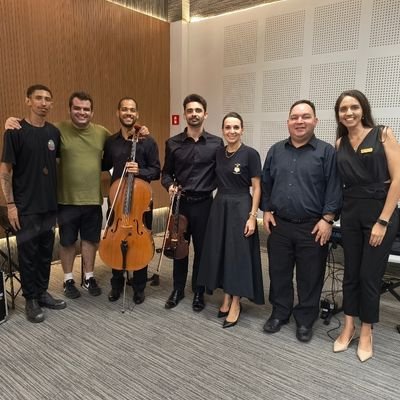 Celebração à beira-mar com trilha sonora personalizada e execução ao vivo de instrumentos de cordas.